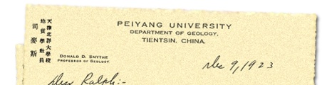 The school here is a Chinese Gov't school, supposed to be the best engineering school in China. The course is two years preparatory with four years of either Mining, Metallurgical or Civil engineering. About 900 students. The faculty is mainly foreign, 11 Americans, 1 Englishman, but the president and a few others are Chinese. Things are not bad though and I think I will like it when I am all straightened out.