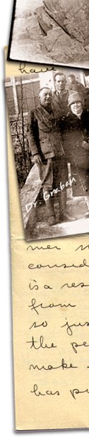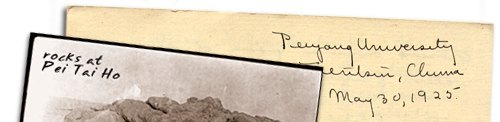 Dear Mother: Yesterday was your birthday and though I intended to write I got put off until too late and so I decided that you'd forgive me if I wrote the first thing in the morning. Yesterday was a busy day for me. I left the house at eight-thirty for town. Arriving there I had a half an hour to shop before beating it back to the Chinese city where I had an English class at the Y.W.C.A. I cut my lesson five minutes short because I wanted to buy some silk for a slip down on the Ku-I-chieh. But my coolie not expecting me was nowhere to be found. I waited at the gate and every peddlar that came by seemed to know that my coolie was away and informed me that he was slow. While waiting I stepped across the road and proceeded to inspect the interior of the an enormous temple built in honor of Confucious. The temple is not old only about twenty years but it never has been cared for. A humpbacked bridge crosses over a pool of slimy water. There is not a treee or blade of grass in the place. There are some tablets and a few devil dogs scattered around and that is about all. Certainly nothing beautiful as it is though it could make a charming place if fixed up. There is plenty of space. Tien finally appeared and I continued my trip. Enclosed is a sample of the silk I bought. When I wash it and find out how it acts I am going to buy some more and make up into a slip for you. I have the yoke already. It is of filet. I came home and as soon as I finished tiffin I started in on my slip, and have it nearly finished. Not so bad to do it all by hand. I have a sewing woman coming next week and she is going to make up some sheets and pillow cases for me. In about two weeks I will be leaving for Pei Tai Ho for the summer. Donald plans to go on to Shansi(?) if there is no war and it doesn't look probable now. Though this end of town is stuffed full of soldiers. I have a job reporting for the Peking and Tientsin Times this summer. It is a British mewspaper so though I will be at a summer resort I will have no society to report. Which I don't object to not doing in the least. I hope to make a little more than expenses but if I do only that it will be quite a help as living there is so expensive. The various missionary societies hold their conferences there during the summer so they will afford me considerable space. That is a resort for all the whites from Shanghai to Mukden so just from the point of the people I will meet should make it interesting. Dr. Grabau has promised me a geology story. Don can tell you who he is. He is now chief adviser to the geology bureau of the Chinese government. Last week he was here for two days and delivered some lectures at the University. In a general way I asked him what opportunities a geologist would have in the East. He said that there was plenty to be done but no money to do it with as any source over here is likely to be cut off at any time. But for a man of independent means it is a geologist's heaven. All of the old timers here claim that never have they seen such a spring in China as we have had this year. It is almost June and no hot weather yet. In fact the spring has been delightful and cool with just enough rain to keep the dust down. Usually, they say winter jumps into blistering summer By the time this reaches you you have no doubt seen Mrs. Eastham. She promised me that she would look you folks up. She is a very sophisticated sort of a person but underneath her seemingly callous exterior I find that she has a warm heart. I really didn't get very well acquainted with her because we are not enough of the same type. Next week is exam week at the U and then school closes. They do not have commencement exercises it seems. Enclosed is a list of the things contained in the box I sent to Eunice a few days ago. I hope she will like the stuff. That cloth of Indian print stuff they claim will not fade when washed but Eunice had better try a corner first. If Eunice sells any of theose earrings be sure to tell her to not be afraid to stick on the price. My quoted price is not much of a guide. She might get some estimate on the value of the jade from the jeweller downtown. He probably thought it worth quite a lot if he was afraid to cut it! If she likes the snuff bottles I will send her some more. The perfume companies are gobbling them up to use a patterns for their perfume bottles. They are made in an infinite variety of shapes, materials and design. The big black bracelet was my pet. Tell Eunice to keep that- its from me and seems to just be made for her. One with as nice workmanship as that doesn't come by often. That can be her birthday present. I expect that she will adore those tinkling white jade earrings. I have more of those if she can find sale for them I will send them. She ought to get at least $5 a pair for those if not $10. Some day when I go to town I am going to search for Buddas and images of Kwan-Yen the bhuddistic madonna. Eunice will like her I know. We have one image of her with three faces and eight arms, but Donald won't give her up. She stands about eight inches high. It is nearing time for Eugene to come and after him my Chinese lesson and I haven't studied that yet so I will close, wishing you many happy returns of your birthday.